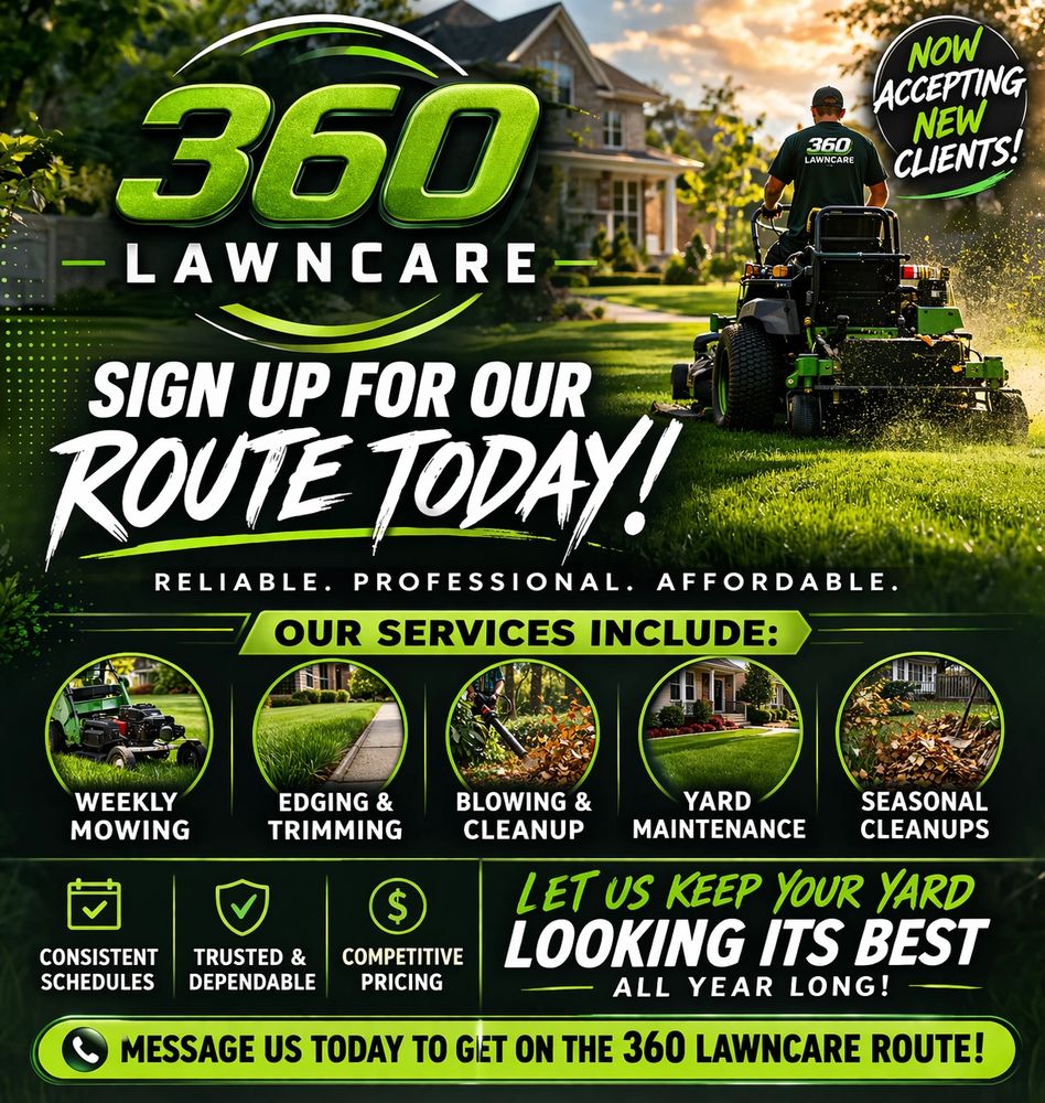 360 Lawncare provides reliable, professional lawn care to keep your yard looking clean, healthy, and sharp. From mowing and edging to seasonal cleanups, we handle it all so you don’t have to. Quality work, done right—every time.